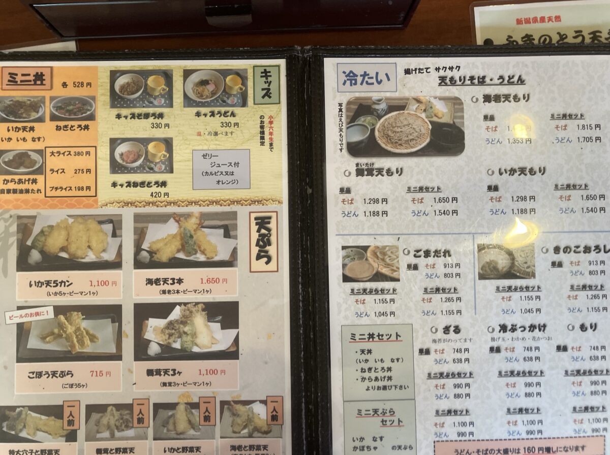 天ぷらまたはミニ丼と、そばまたはうどんの種類、麺の量が大盛りまで選べて1,000円前後はとてもお得ですね!